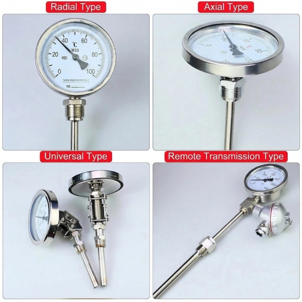 This industrial thermometer operates based on a bimetal strip mechanism, ensuring fast response and long service life without the need for external power. It is widely used in HVAC systems, pipelines, boilers, and machinery for real-time temperature monitoring.